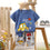 ensemble pour bébé et enfant chez nounababy Dakar Sénégal , motif machine blanc, jaune de couleur t-shirt blanc et short bleu